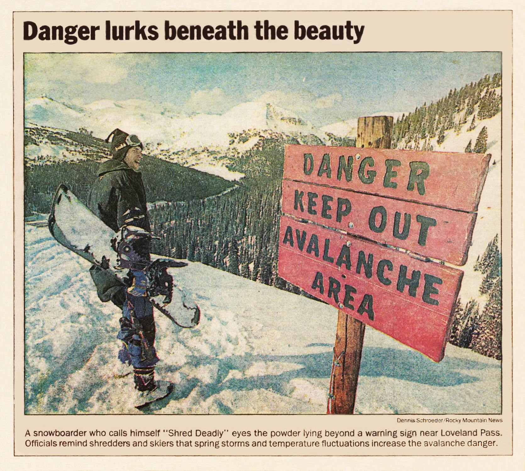 Digital restoration of Rocky Mountain News featuring "Shred Deadly"